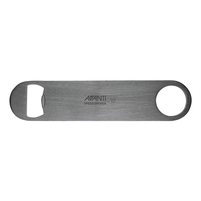 Refresh yourself and your guests in record time with the Avanti® Speed Bottle Opener. Whether you have a screw top or flip top bottle this bar blade easily opens all type of bottle top bottles over and over again without fail. Well sized with its convenient flat design, this professional bottle opener is constructed from one piece of durable stainless steel and features a bottle opener on one end and spinning ring on the other. This is an essential piece of kit for any bartender or enthusiast as the flat shape means it can be stored comfortably in the back pocket and makes for easy retrieval for quick opening of bottles. A must have in your bar, kitchen draw or esky.