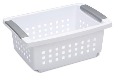 From decluttering countertops to organizing your pantry or workspace, the Sterilite Small Stacking Basket offers a practical and stylish solution to everyday storage needs. Its stackable design provides additional storage without taking up extra surface area, making it perfect for maximizing small spaces.