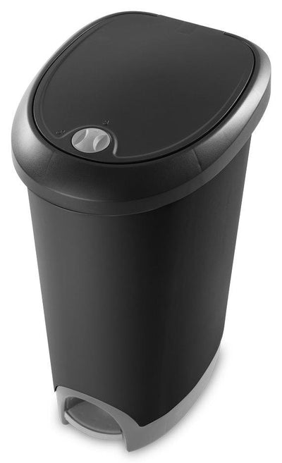The 48 Litre Locking StepOn Wastebasket is designed with a modern textured aesthetic and features a locking lid that will prevent pets and children from accessing the trash. Turning the locking knob counter clockwise will easily unlock the wastebasket. A hinged lid opens easily to replace the trash liner and firmly snaps back onto the base to keep lid securely in place, even if the wastebasket is accidentally tipped or pushed over. The StepOn lid is perfect for those who prefer a hands – free method of trash disposal. The two piece white and titanium accented base provides a decorative, upscale touch to complement any home décor. Dimensions - 43.8cm x 33.7cm x 64.8cm Features: Step On lid opens with a slight step on the foot pedal when unlocked Locking lid keeps pets and children out of the trash Lid assembles securely to the base D-shaped design fits neatly against a wall or cabinet Smooth surface is easy to clean