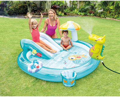 Let your kids dive into exciting summer splash fun with the Intex Gator Play Center. This inflatable above-ground pool play center comes packed with interactive features like a water slide, a mushroom shade, and an adorable gator character that will keep your little ones entertained for hours. With a built-in water sprayer that attaches to your garden hose, it helps keep your children cool on hot summer days.