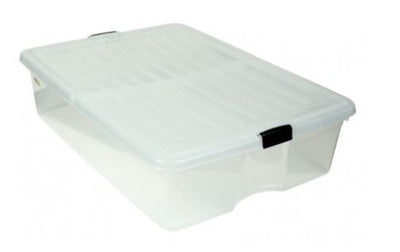 These clear plastic underbed storage boxes are ideal for stowing away your wardrobe overflow or linen. The lid is totally removable and is middle hinged so that the box can be opened either end. The base has four glides which help the box slide and the boxes can be easily stacked.
